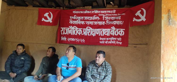 माडी : नेपाल कम्युनिस्ट पार्टी रोल्पाले माडीमा राजनीतिक तथा वैचारिक प्रशिक्षण सम्पन्न गरेको छ । नेकपा रोल्पा जिल्ला इन्चार्ज दिनेश बिक्रम चन्दको प्रमुख आतिथ्यमा सम्पन्न कार्यक्रममा निवर्तमान इन्चार्ज सन्तोष सुवेदीको विशेष अतिथि र जिल्ला सेक्रेटरी शोभाराम राना अतिथि थिए । उनीहरुले पार्टीको नयाँ नीति तथा कार्यक्रमको बारेमा स्पष्ट पारेका थिए ।
