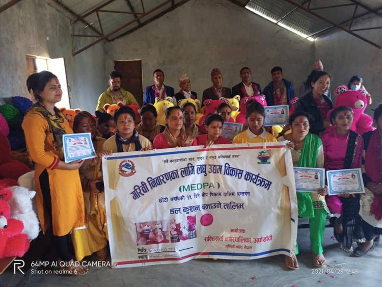 अनिल नेपाली । अर्घाखाँची । सीपले मानिसलाई आत्मनिर्भर, दक्ष बनाउने हुँदामानिसको जीवनको लागि सीप अपरिहार्य रहेको सन्धिखर्क नगरपालिका नगर उपप्रमुख ठाकुरकुमार विकले बताए । गरिबी निवारणका लागि लघु उद्यम विकास कार्यक्रम अन्तर्गत छोटो अवधिकोे १५ दिने डल कुशन बनाउने तालिमको आइतबार वडा नं.- ११ मा विधिगत रुपमा समानपन गर्दै उपप्रमुख विकले यस्तो बताएका हुन् ।