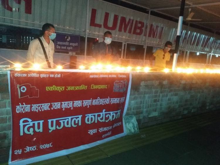 बुटवल । नेपाल कम्युनिस्ट पार्टीको अग्रभागिय सङ्गठन युवा सङ्गठन नेपाल, रूपन्देहीले मङ्गलबार कोरोना भाइरसबाट ज्यान गुमाएका सम्पूर्ण नागरिकहरूको सम्झना स्वरूप द्वीप प्रज्वलन कार्यक्रम सम्पन्न गरेको छ ।
