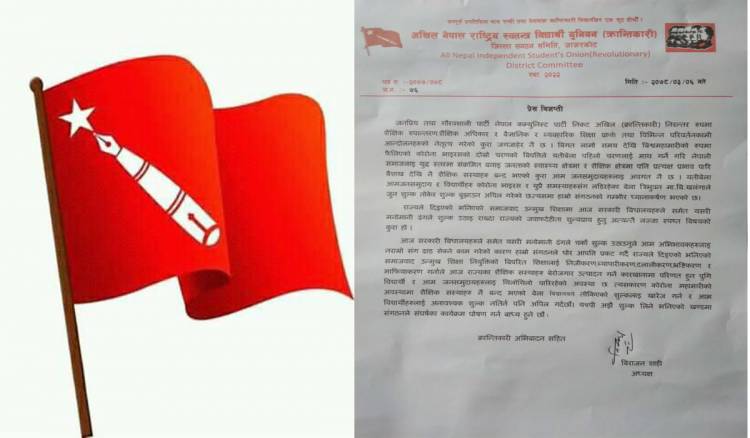 राज्यले दिइएको भनिएको समाजवाद उन्मुख शिक्षा नियुक्तिको विपरीत शिक्षालाई निजीकरण,व्यापारीकरण, दलालीकरण, भ्रष्टीकरण र माफियाकरण गर्नले आज राज्यका शैक्षिक संस्थाहरु बेरोजगार उत्पादन गर्ने कारखानामा परिणत हुन पुगी विद्यार्थी र आम जनसमुदायहरुलाई थिलोथिलो पारिरहेको अवस्था छ, त्यसकारण विद्यालयले कोरोना महामारीको अवस्थामा शैक्षिक संस्थाहरु नै बन्द भएको बेला तोकिएको शुल्कलाई खारेज गर्न र आम विद्यार्थीहरुलाई अनावश्यक शुल्क नतिर्न पनि अपिल गर्दछौँ’ विज्ञप्तीमा भनिएको छ ।