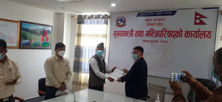बुटवल । नेपाल पत्रकार महासंघ रुपन्देही शाखाले लुम्बिनी प्रदेश सरकारले ल्याएको सञ्चार माध्यम सम्बन्धि विधेयक पुर्नलेखनको माग गर्दै मुख्यमन्त्री शंकर पोखरेललाई ज्ञापन पत्र बुझाएको छ । आइतबार महासंघ रुपन्देहीका अध्यक्ष रामराज पोख्रेलले लुम्बिनी प्रदेशका प्रमुख सचिव भरतमणी सुवेदी मार्फत मुख्यमन्त्रीलाई ज्ञापनपत्र बुझाएका हुन् । मुख्यमन्त्री शंकर पोखरेल संघीय राजधानी काठमाडौं भएकाले प्रमुख सचिवलाई ज्ञापनपत्र बुझाइएको महासंघले जनाएको छ । ज्ञापनपत्र बुझ्दै प्रमुख सचिव सुवेदीले मुख्यमन्त्रीलाई प्राप्त ज्ञापनपत्र बुझाउने प्रतिबद्धता जनाए ।