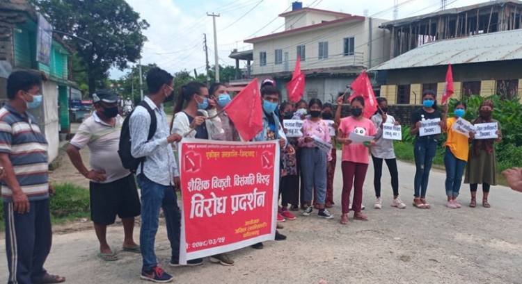 कपिलवस्तु । नेकपा निकट अखिल (क्रान्तिकारी) कपिलवस्तुले जिल्लाको विभिन्न स्थानमा शैक्षिक विकृतिका विरुद्ध विरोध प्रदर्शन गरेको छ । शुक्रबार केन्द्रीय कार्यक्रम अन्तर्गत शिक्षाको निजीकरण र चरम व्यापारीकरण, त्रिविले बढाएको शुल्क, अनलाइन शिक्षामा व्यापार लगायत सबै शैक्षिक विकृतिका विरुद्ध क्रान्तिकारीले उक्त कार्यक्रम गरेको हो ।